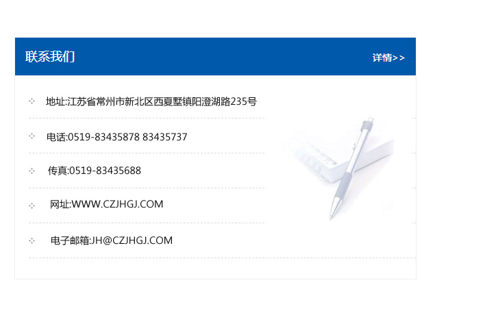 傳真:0519-83435688    郵編:213135    網址:WWW.czjhgj_com.baijuu.com    電子郵箱:JH@czjhgj_com.baijuu.com